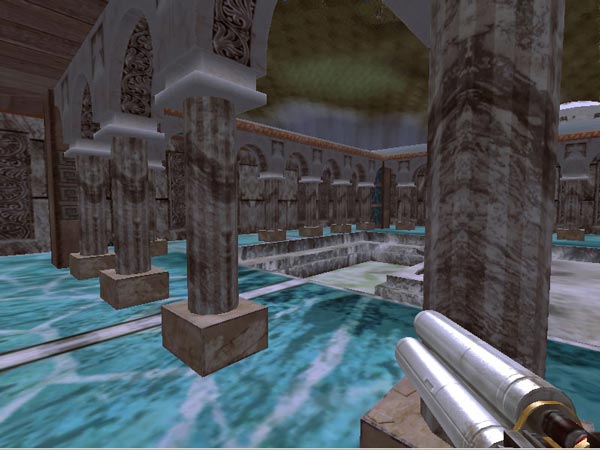 Okay, so it's basically something hacked together with Torque, but I mean come on! It's shiny, with pretty colors. The whole game is built in Torque Game Engine Advanced, made by Garage Games, and uses polysoup collision detection from the community. All assets you see in-game with the exception of the character and weapon model were created exclusively by me and most can be seen on my portfolio site.